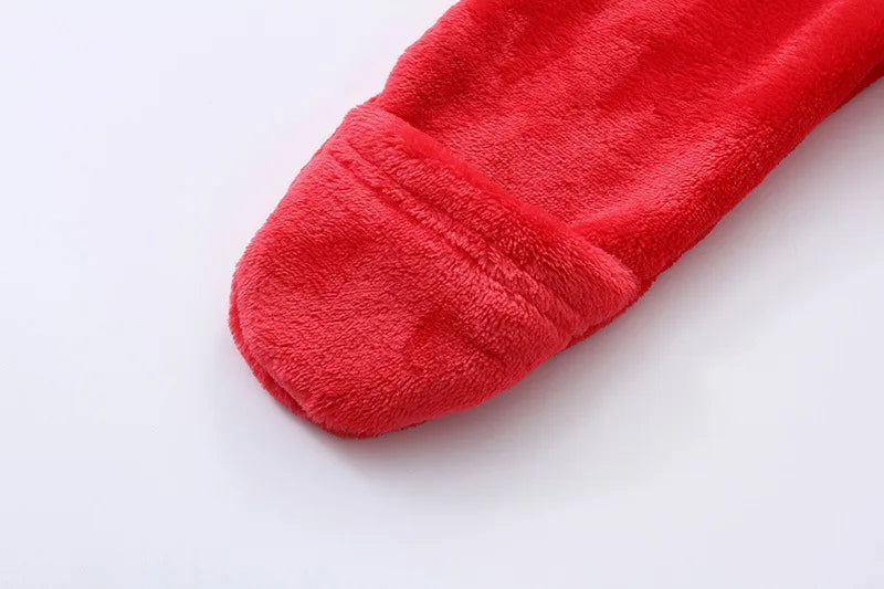 Crafted from ultra-soft flannel, this cozy hooded jumpsuit keeps your baby comfortable in cold weather while offering the perfect festive look.