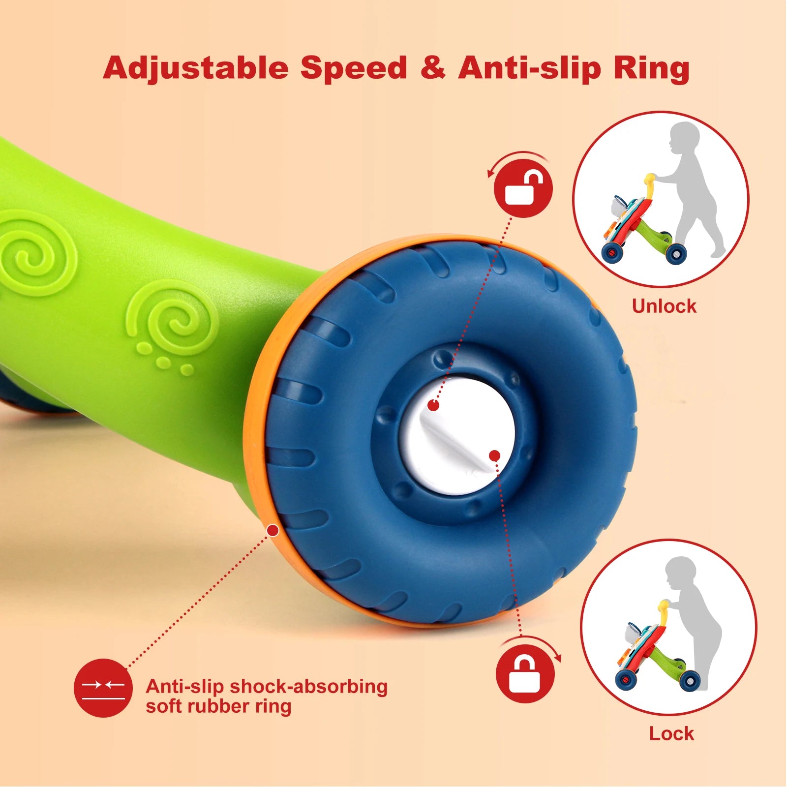 The stable, anti-slip structure provides safe walking assistance, while the playful design keeps babies entertained and motivated.